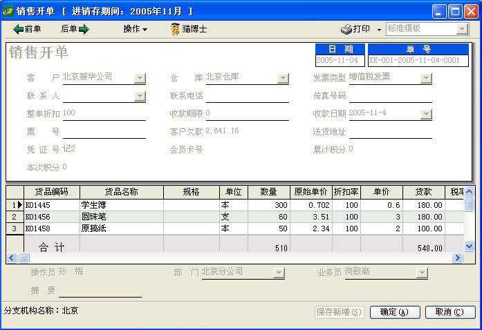销售订单、销售开单、销售收款、销售退货、现款销售 |
