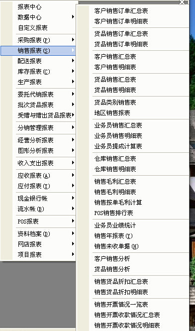 销售订单、销售开单、销售收款、销售退货、现款销售、委托代销、代销结算 |